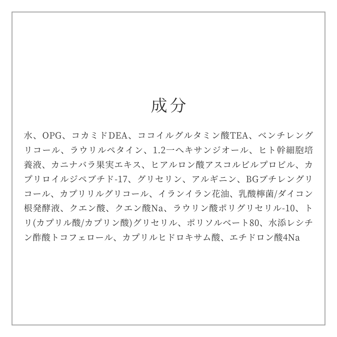ヒト幹細胞培養液や植物由来の保湿成分を配合し、